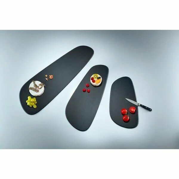 Das funktionale Schneidebrett Duracore von Continenta ist in seiner Formsprache an die Linien eines Kieselsteines angelehnt. Durch diesen modernen Look und die Fertigung aus äußerst belastbarer Holz-Papier-Faser überzeugt die Konzeption als zuverlässiger, langlebiger Alltagshelfer.