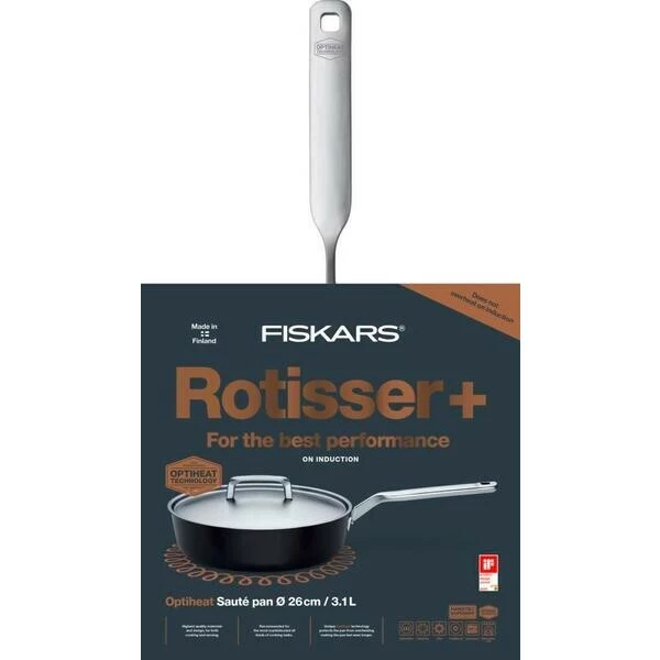 In der Sautierpfanne aus der Serie Rotisser+ Optiheat von Fiskars steckt die ganze Power der Optiheat-Technologie, die dafür sorgt, dass sich die Pfanne beim scharfen Anbraten auf Induktionskochfeldern nicht überhitzt und dennoch die Wärme ideal leitet. Durch den wärmeleitenden und schützenden Rand macht die Zubereitung von Geschnetzeltem gleich doppelt Freude.