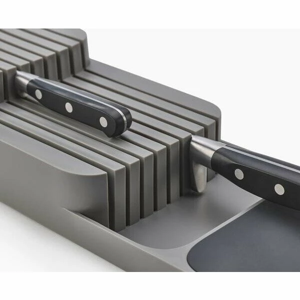 Bringen Sie Ordnung und mehr Sicherheit in Ihre Küchenschublade mit dem Messerordnungshelfer DrawerStore von Joseph Joseph. Der Ordnungshelfer ist platzsparend und alle Messer sind schnell zur Hand.