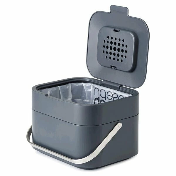 Mit dem Mülleimer Grey der Serie Stack von Joseph Joseph haben Sie einen praktischen Alltagshelfer bei der Zubereitung gesunder Speisen zur Hand. Schalen und Reste von Obst, Gemüse oder Kräutern sind für den Verzehr meist ungeeignet und landen direkt im Müll. Die sich selbst zersetzenden Abfälle entwickeln schon nach kurzer Zeit unangenehme Gerüche, denen Sie mit diesem cleveren Abfalleimer entgegenwirken können.