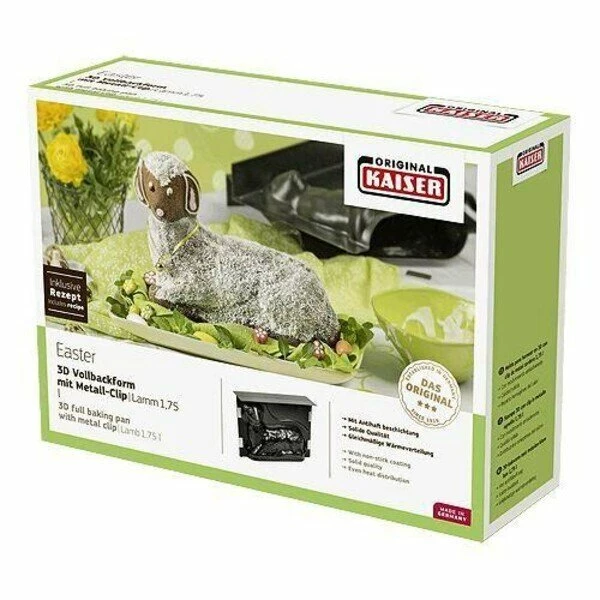 Die Maxi-Lammform von Kaiser verhilft Ihnen zu einem besonderen Augenschmaus unter Ihrem Ostergebäck. Einfach zu handhaben und mit einer Antihaftbeschichtung versehen, erstellen Sie aus jeder Art von Rührteig ein bezauberndes Lamm in 3D.