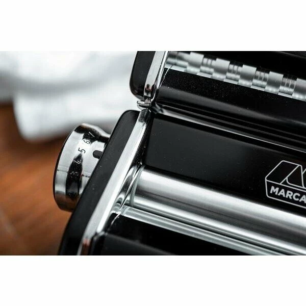 Die schwarze Nudelmaschine Atlas 150 Design von Marcato wirkt in ihrem dunklen Gewand besonders seriös und stilsicher. Gleichzeitig besticht die manuell bedienbare Nudelmaschine durch ihre Nutzerfreundlichkeit und die einfache Art, ein bisschen Italien in die eigene Küche zu bringen.