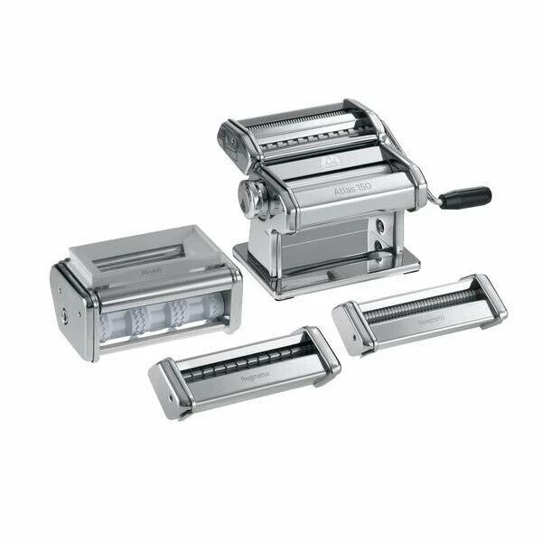 - besteht aus einer Nudelmaschine Atlas 150 Classic und 3 einsetzbaren Sonderzubehörteilen