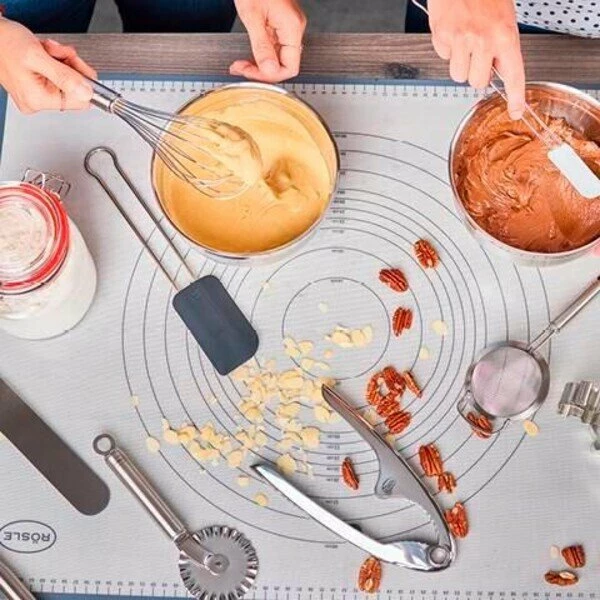 Die praktische Back- und Arbeitsmatte von Rösle ist mit einer Größe von 68×53 cm groß genug für alle möglichen Zubereitungsarten – Backen, Formen, Verzieren.
