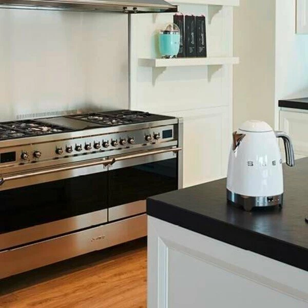Sicherheitsfunktionen wie das automatische Abstellen bei Wassermangel gehören natürlich zu einem modernen Küchengerät aus dem Hause Smeg dazu, weshalb auch der Retro-Wasserkocher mit dieser praktischen Funktion ausgestattet ist. Auch um das Thema Kalk müssen Sie sich nicht allzu viele Sorgen machen, der Edelstahlfilter kann spielend leicht herausgenommen und anschließend gewaschen werden. Lebhafte Farben, runde Formen kombiniert mit dem Schriftzug auf ruhiger Ebene schenken dem 50´s Style Wasserkocher seinen unverkennbaren Look. Perfekt für all jene, die noch nach dem passenden Eyecatcher in der Küche suchen.