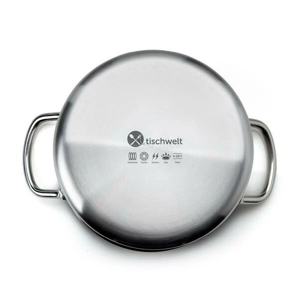 - gefertigt aus zwei Schichten induktivem Edelstahl, die sich um einen dreifachen Aluminiumkern legen