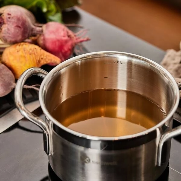 - Hitze wird bis zum Rand der Töpfe gleichmäßig verteilt und an die Speisen abgegeben