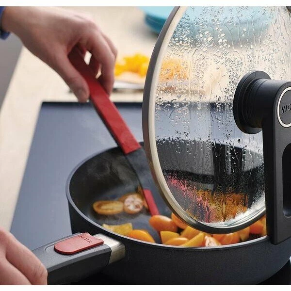 Der Pfannenwender Turn-!t gehört zu den speziell konzipierten Küchenhelfern der Kollektion Cook !t von Woll und vereint Funktionalität, Design und Qualität. Die Konzeption aus lebensmittelechtem und hochwertigem Kunststoff besticht durch ihre geschlossene Wendefläche und ihre Hitzebeständigkeit. Alle rot gefärbten Elemente sind bis zu 260 °C temperaturbeständig und stecken den Einsatz am Pfannen- und Topfboden mühelos weg. Das vordere Ende ist mit einer dünnen und flexiblen Silikonlippe abgerundet, die mit sensiblen Oberflächen besonders schonend umgeht. So wird der Pfannenwender zu einem unverzichtbaren Handwerkszeug.