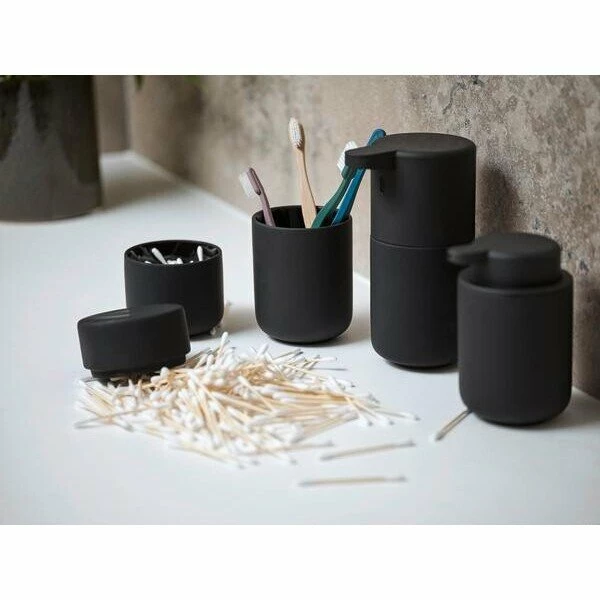 Der schlichte Seifenspender Ume Schwarz von Zone Denmark bringt mit seinem schwarzen Gewand moderne Klassik in Ihr Badezimmer. Dabei strahlt der Seifenspender Ruhe und Seriosität aus. Die weiche Soft-Touch-Oberfläche macht das Pumpen zu einem Genuss für Ihre Hände.