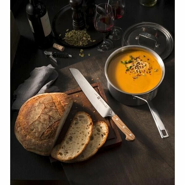 Die hochwertige Klinge des Brotmessers der Serie Pro Wood von Zwilling ist besonders scharf und misst 20 cm.