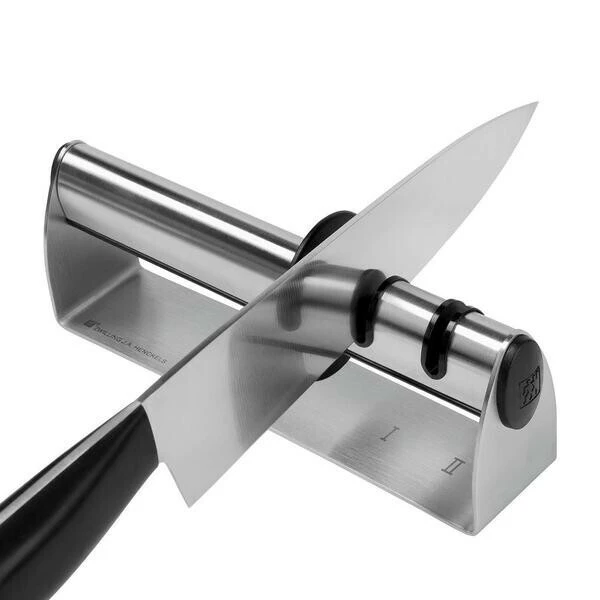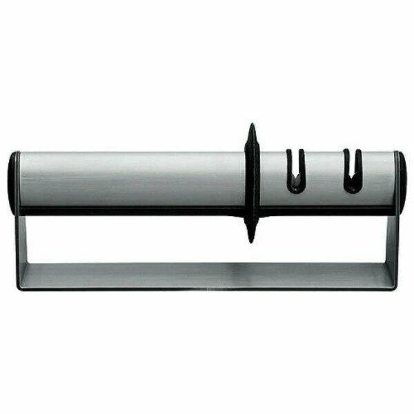 Der Messerschärfer ist einfach zu bedienen, ungefährlich und für alle Hobbyköche, die Wert auf gut geschärfte Messer legen, ein nützliches und obendrein platzsparendes Utensil. Das Gerät kann sowohl von Rechts- als auch von Linkshändern benutzt werden.