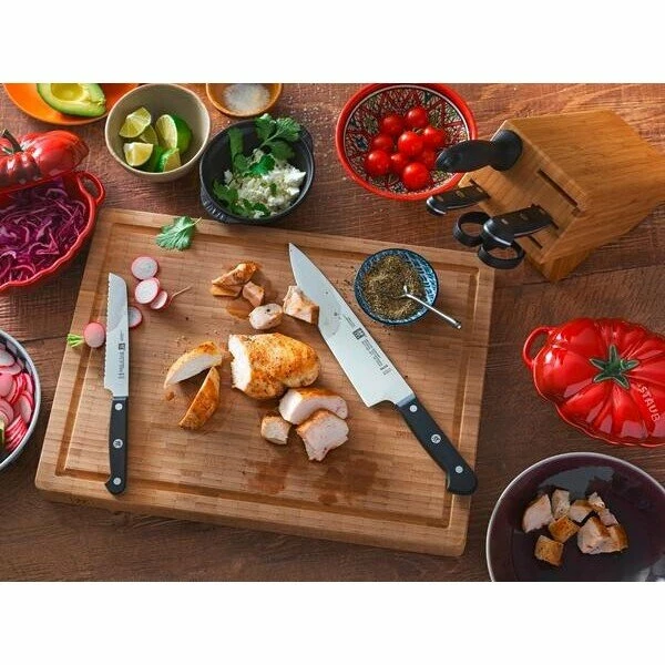 Das Universalmesser Gourmet von Zwilling begeistert durch seine vielseitigen Einsatzmöglichkeiten. Egal, ob Sie Brötchen, Wurst oder Tomaten schneiden möchten, mit diesem praktischen Küchenmesser und seinem scharfen Wellenschliff sind Sie auf der sicheren Seite.
